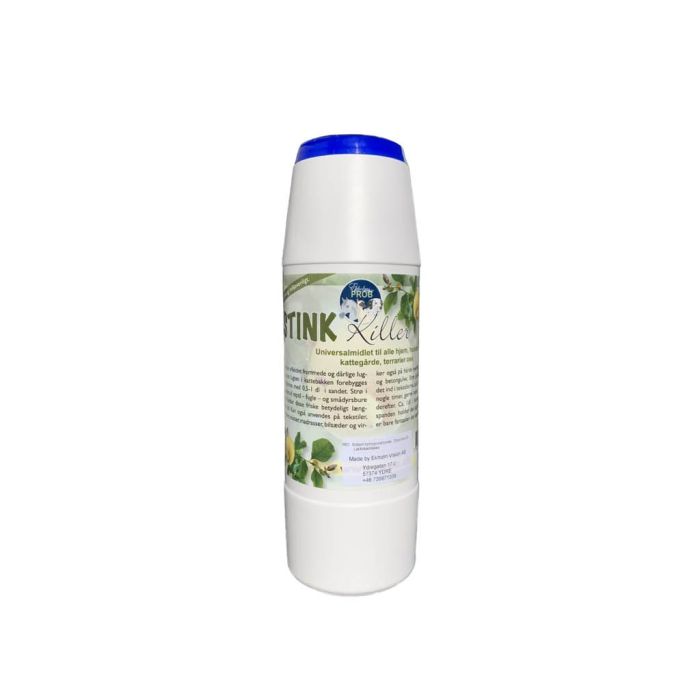 Dette Stink Killer pulver er et must-have! Ved hjælp af laktobakterier og pulverets øvrige indhold fjerner Stink Killer den uønsket lugt. Anvend Stink Killer til hunde- og kattegårde, terrarier, sko, gulve, møbler, måtter osv.