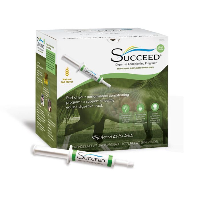 SUCCEED Digestive Conditioning Program® (DCP) er et seriøst produkt til professionelle hesteejere. Det er det eneste fordøjelsessundhedsprodukt til heste med multiple patenter i verden. Det indeholder en del aktive ingredienser der hver især støtter disse udfordringer og gavner hestens fordøjelse. Blandt nogle af disse kan fremhæves de polære lipider (fra havreolien), der bidrager til øget biotilgængelighed af næringsstoffer samt fedtopløselige vitaminer. β-glukanerne (fra havreklid) der forøger foderpassagetiden for en bedre optagelse af stivelse i tyndtarmen, og samtidigt støtter et sundt immunforsvar. Tilførslen af aminosyren Arginin, er også en vigtig komponent for en god immunfunktion, heling af væv, godt bloodflow og øget træningskapacitet, samt aminosyren Threonin, som sikrer en optimal produktion af mucus.